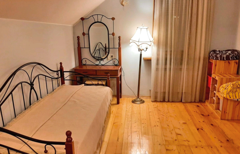 Спальня №5 находится на втором этаже: кровать 160х200 и детская кроватка 60х120.