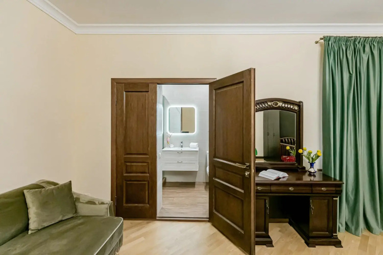 От железнодорожного вокзала Кисловодска до апартаментов можно доехать на такси или маршрутке.
