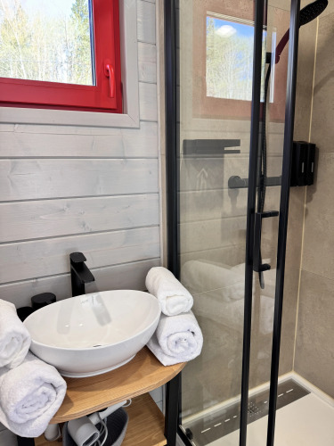 В распоряжении гостей стилизованные дома категории 18+ с панорамными окнами. Дома с кухнями, ванными комнатами, мангальными и костровыми зонами. Рядом с каждым домом есть банный чан. В каждом доме есть светонепроницаемые шторы.