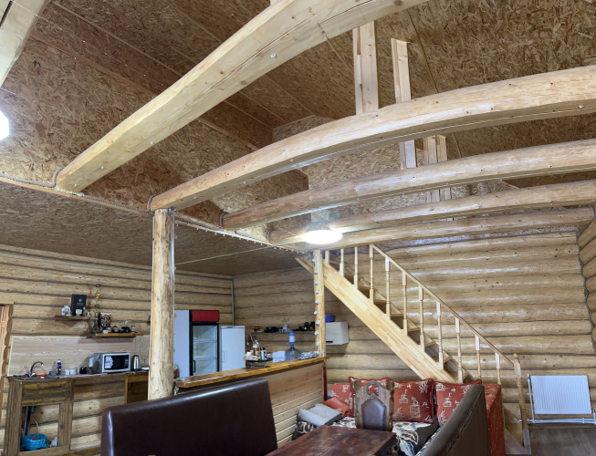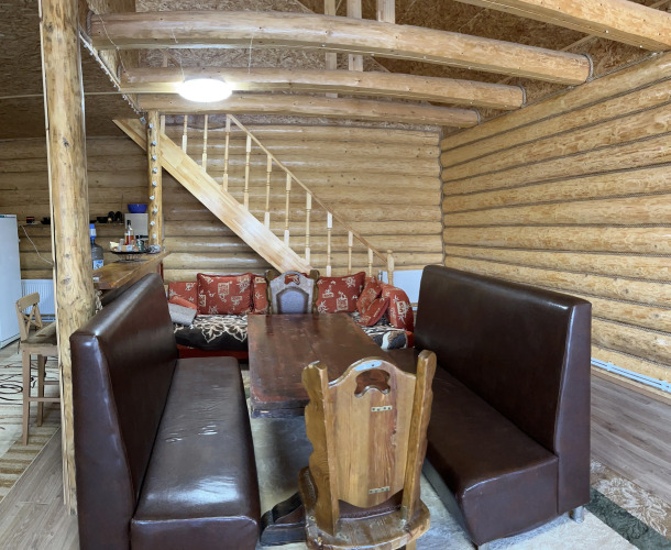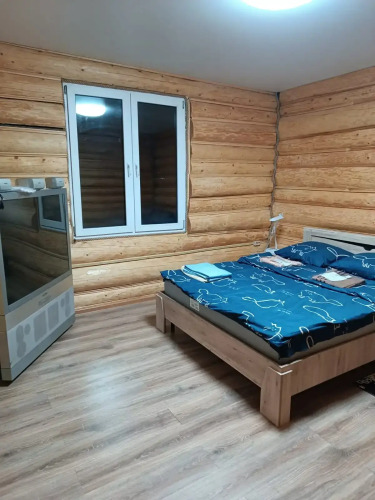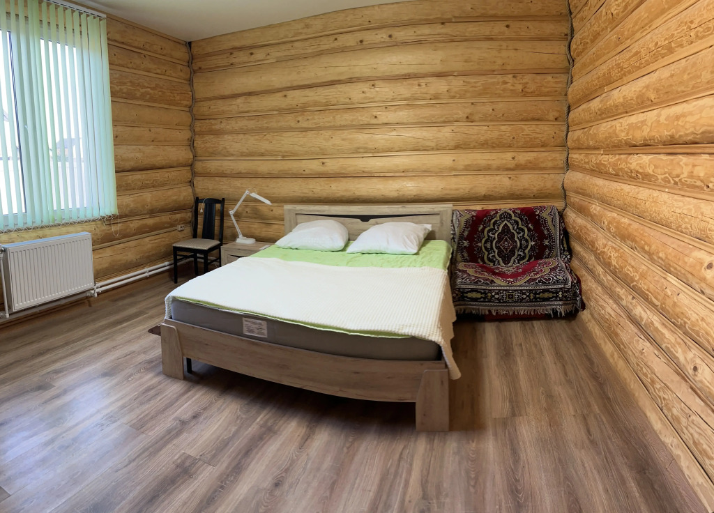 Гостям предлагается проживание в бревенчатом доме, рассчитанном на размещение до 10 человек. В доме имеется 3 спальни с двуспальными кроватями и гостиная с раскладным диваном-кроватью. В двух спальнях дополнительно есть по креслу-кровати.