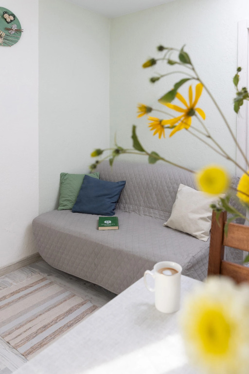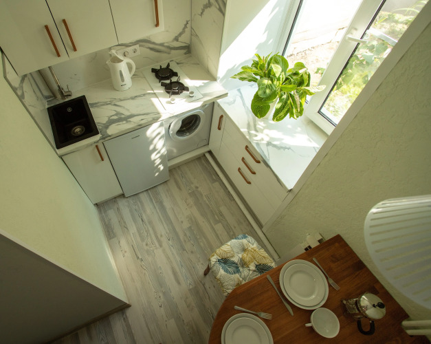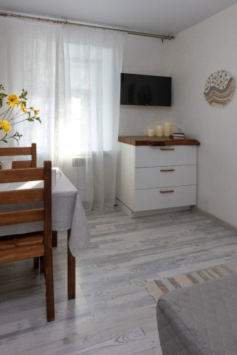 Квартира подходит для семейного отдыха с детьми. Общее количество спальных мест – 5. В квартире 2 изолированные комнаты 12 кв. м и 9 кв. м, кухня 4 метра, санузел с душем. В большой комнате — двуспальная кровать 160 см на 200 см с ортопедическим матрасом, кресло-кровать со спальным местом 90 см на 195 см, шкафы, телевизор. В маленькой комнате — раскладной диван икеа-ликселе 140 см на 200 см, стол и 4 стула, шкаф, комод, телевизор. На кухне — необходимое для приготовления пищи, холодильник, чайник, стол для завтрака на 2/3 персоны. Санузел оборудован душем, раковиной, унитазом, полотенцесушителем, феном, гигиеническими принадлежностями. В квартире есть утюг, гладильная доска, стиральная машина. Гостям предоставляются полотенца, гигиенические принадлежности, постельное бельё. Парковочные места находятся улице, вдоль дома.