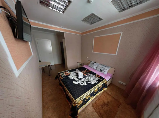 В номере вы найдёте телевизор и тапочки. Оснащение зависит от выбранной категории номера.