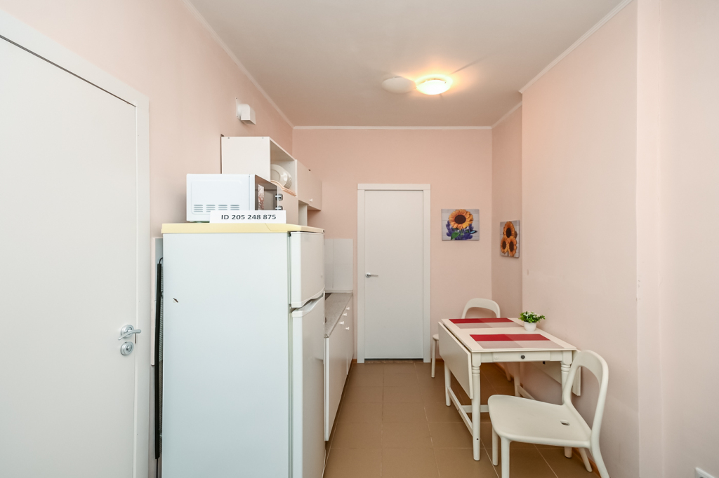 В апартаментах имеется, широкая кровать, полноценная кухня, посуда, все для приготовления еды, чай, сахар, кофе, микроволновка, плазменный телевизор, кабельное телевидение, гели, шампуни, одноразовые тапочки, стиральная машина, холодильник, фен, утюг, гладильная доска. В апартаментах застекленный балкон. Для удобства гостей в доме имеется лифт.