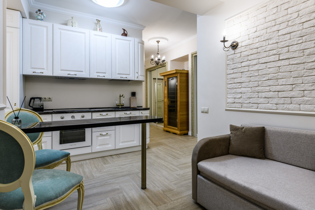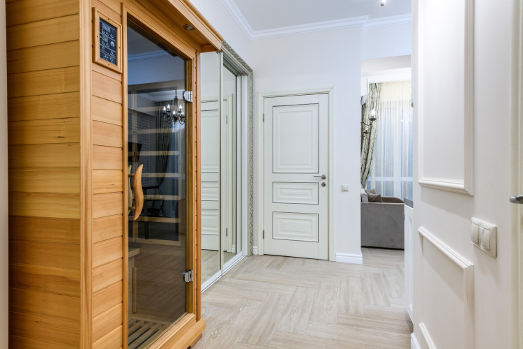 Апартаменты с личной сауной расположены на первом этаже.