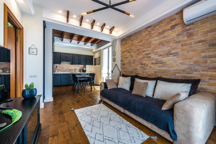 Гостиная: диван-кровать, Smart TV 55", кондиционер.