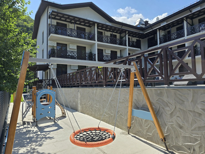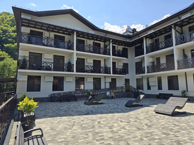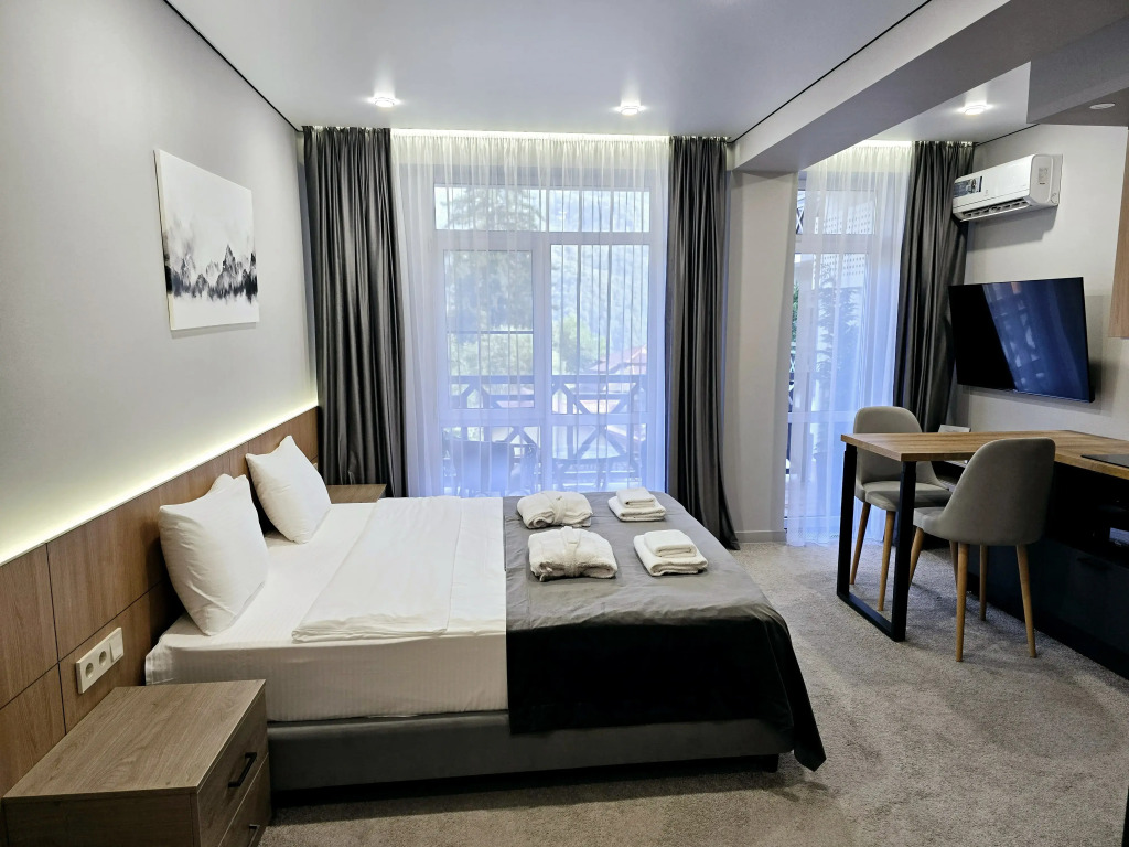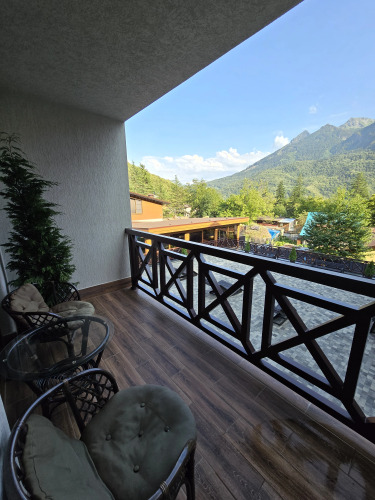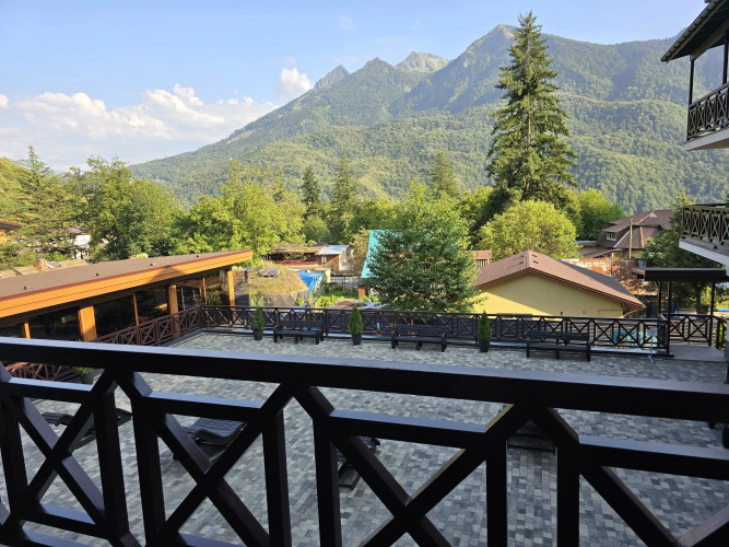 Отель Панорама Ачишхо номер с балконом, адрес на карте Красная Поляна, Ачишховская улица, д.10, с описанием номеров и доступностью онлайн бронирования на ресурсе ВашОтель.RU , цены проживания и удобства.