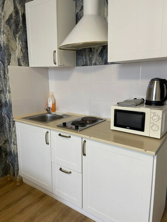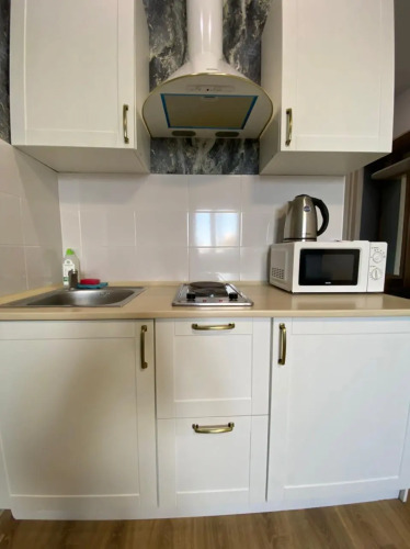 Апартаменты полностью укомплектованы всем необходимым для комфортного проживания, в числе удобств: стиральная машина, гладильная доска и утюг, телевизор с пакетом каналов, Wi-Fi, бельё и полотенца. На кухне холодильник, микроволновая печь, чайник, плита, посуда.