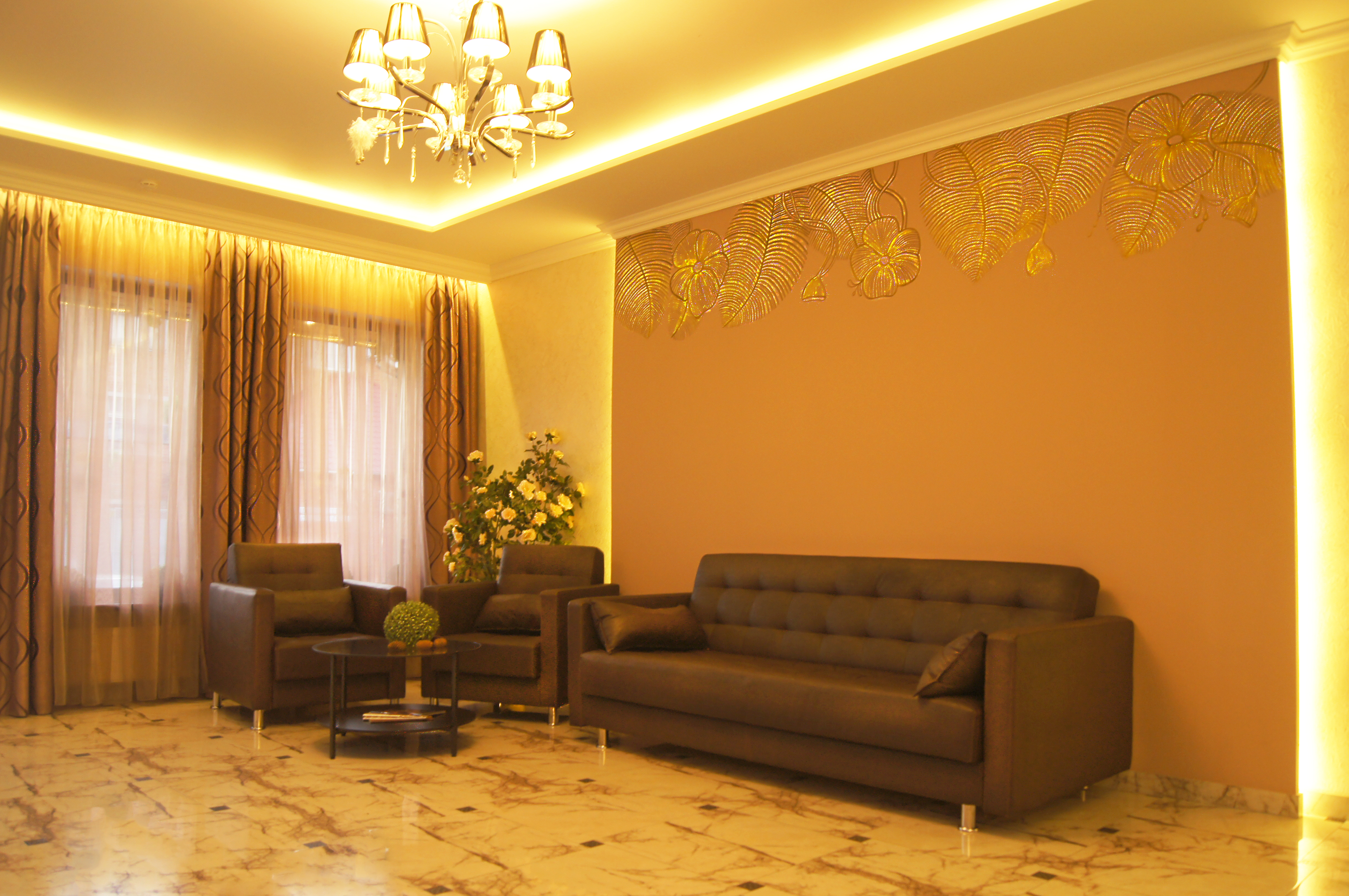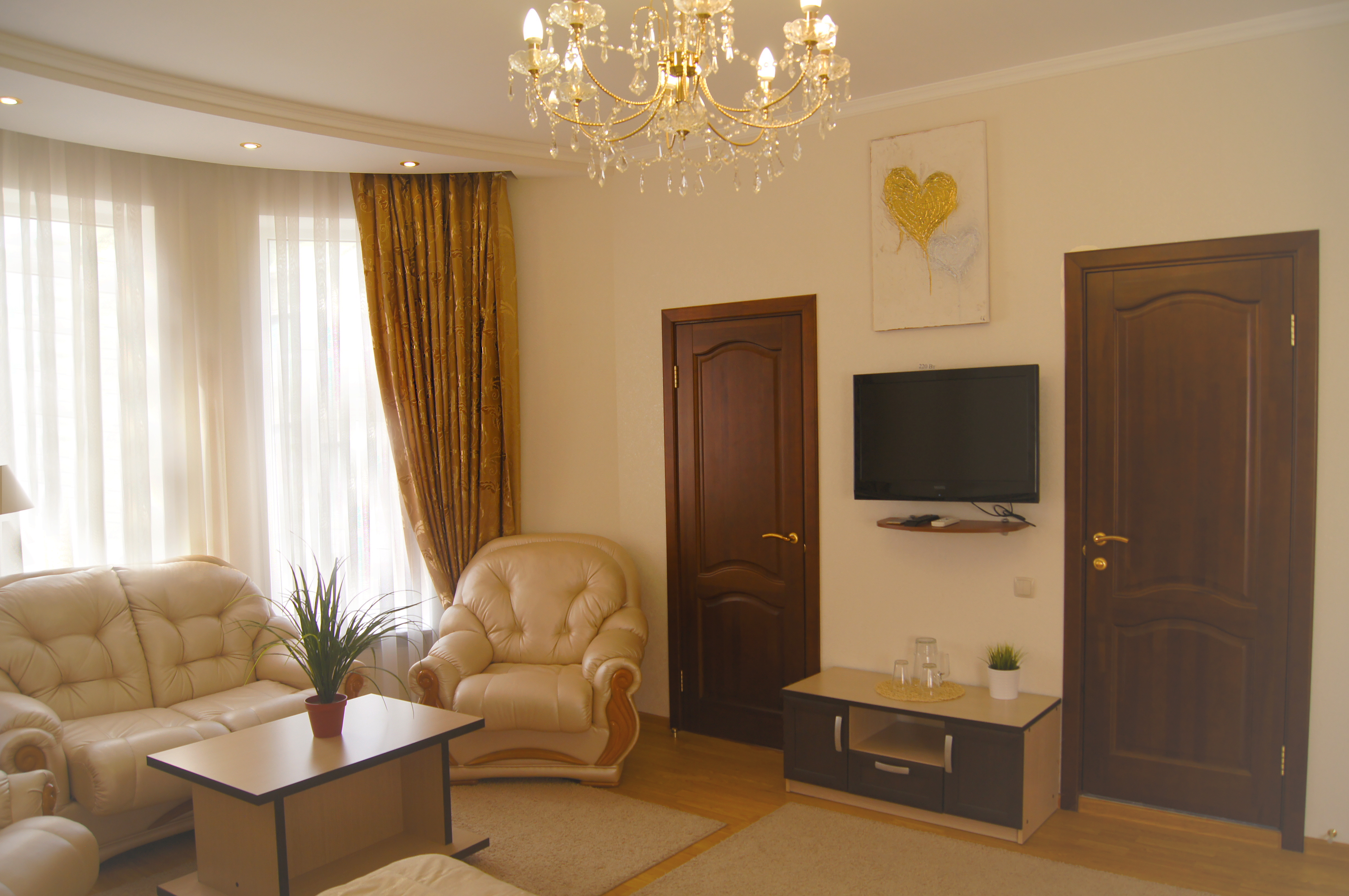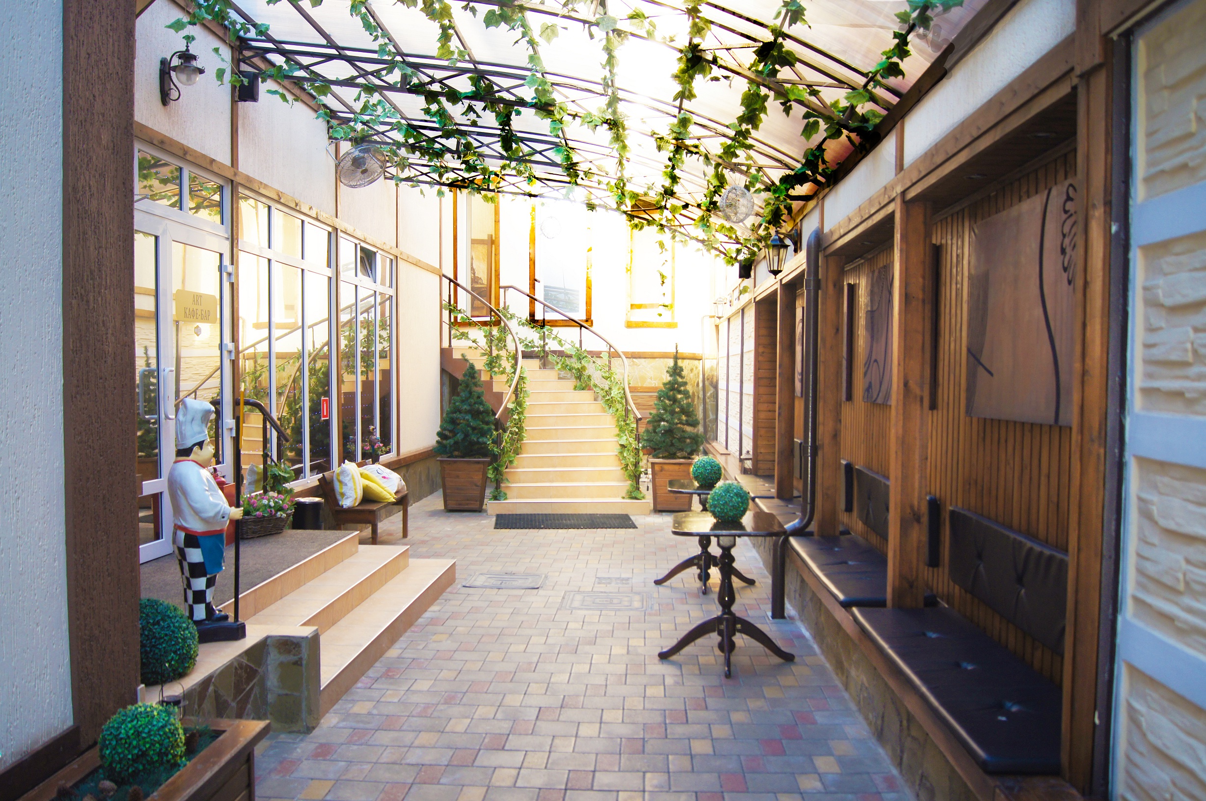Интерьер краснодарского отеля Art оформлен в классическом стиле с использованием ярких тонов и мягкой мебели. Во всех номерах есть кондиционер, телевизор с плоским экраном, холодильник и собственная ванная комната.