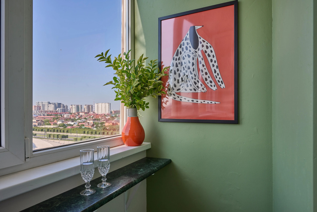 Квартира с дизайнерским интерьером после ремонта. Двухкомнатная квартира рассчитана на размещение до 6 гостей. Есть двуспальная кровать и две диван-кровати. Имеется раздельный санузел, два балкона с видом на стадион и во двор. В комнатах и на кухне установлены кондиционеры. Имеется необходимая посуда, электрическая плита, духовой шкаф, вытяжка, микроволновка, тостер, бутилированная вода, чай, кофе, сахар. К услугам гостей Wi‑Fi, Smart TV, стиральная машина. Во дворе расположены детская и спортивная площадки, а также зона для командных игр.