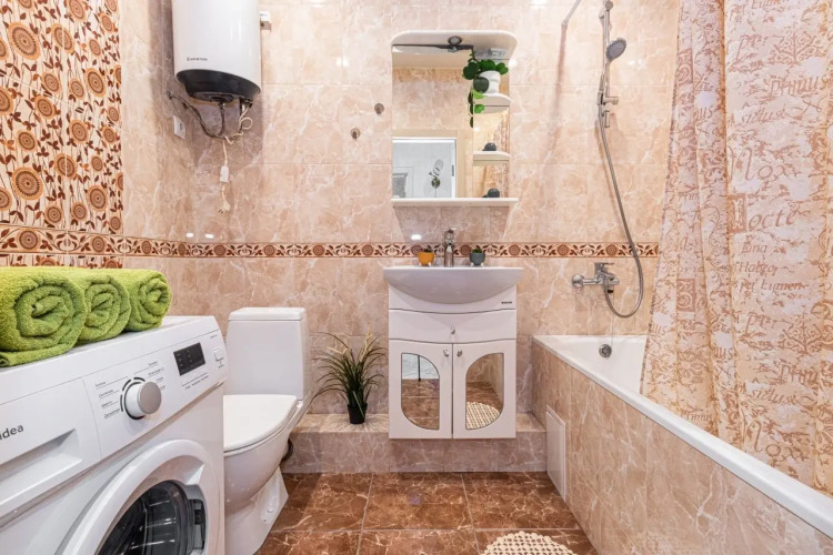 В ванной комнате есть стиральная машина, душ, средства личной гигиены.