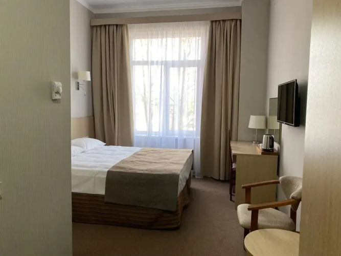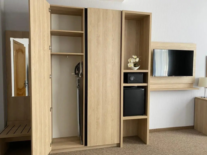 В номере гостей ждут телевизор и халат. Перечисленные услуги есть не во всех номерах.