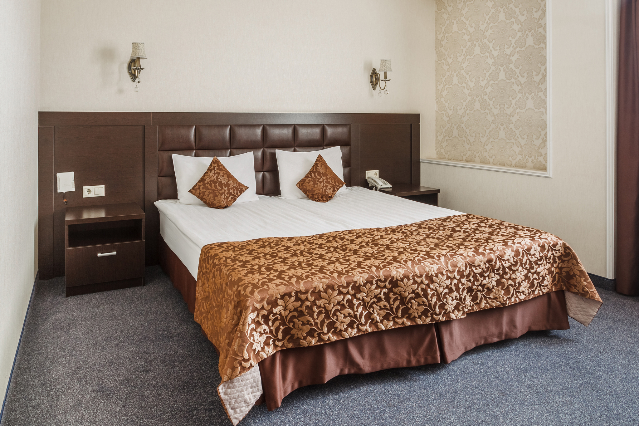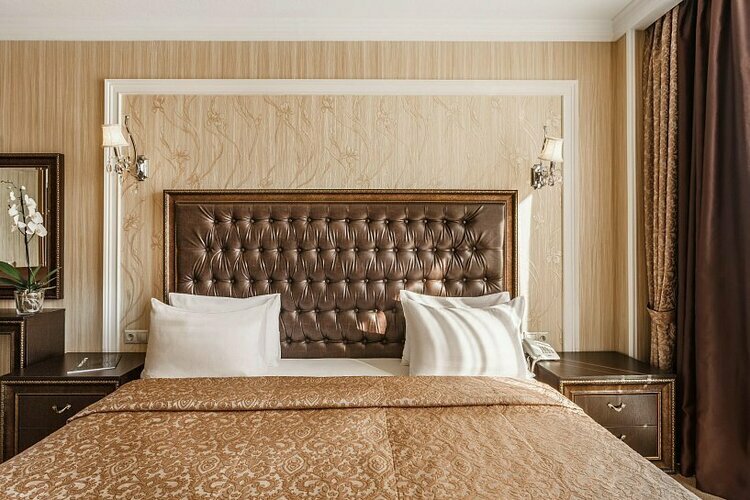 Новый отель бизнес-класса рад предложить своим гостям 56 номеров различных категорий. 6-тиэтажное здание отеля выполнено в классическом стиле. Воздушные хрустальные люстры на входе вызывают восторг и позволяют с первых же секунд почувствовать себя аристократом.