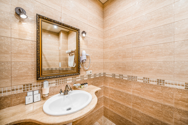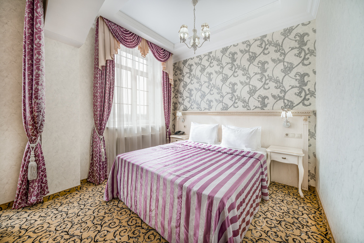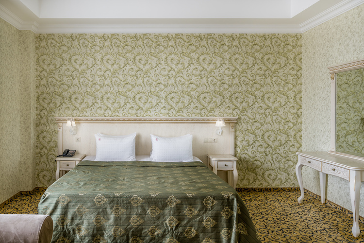 Классический номер с сдержанным интерьером, оборудованный двуспальной кроватью, прикроватными тумбами с прикроватными бра а также рабочим столом и ТВ с доступом в интернет. Шкаф-купе с вешалками и полками, сейф и мини-бар. Также в номере имеется свой санузел с душевой кабиной укомплектованный полотенцами, халатами, тапочками и феном, а также туалетно-косметическими принадлежностями.