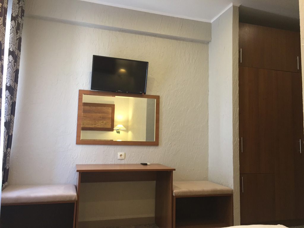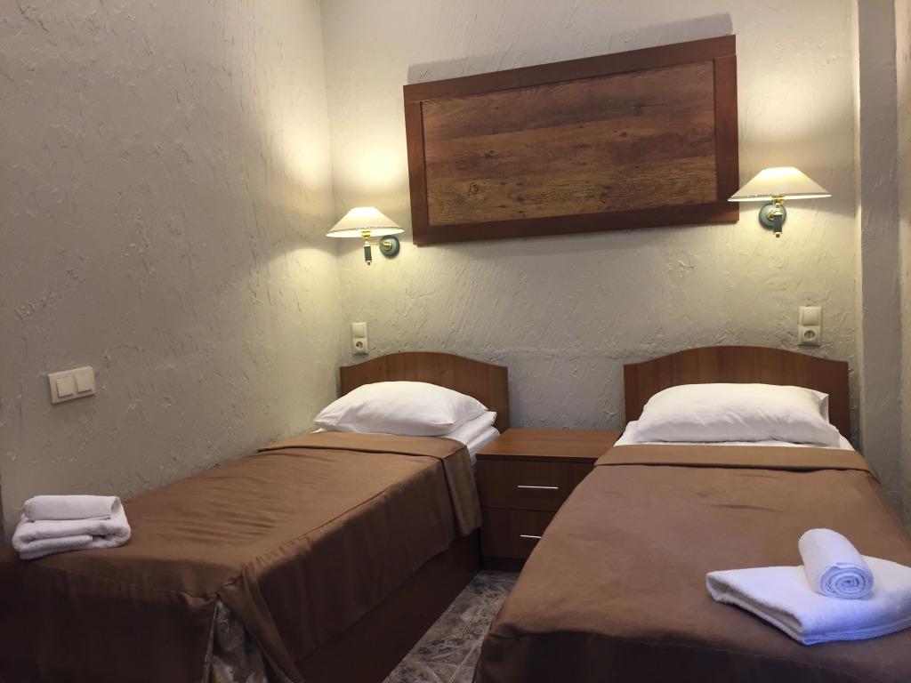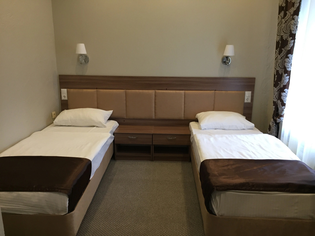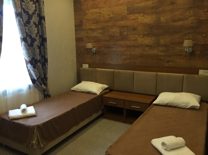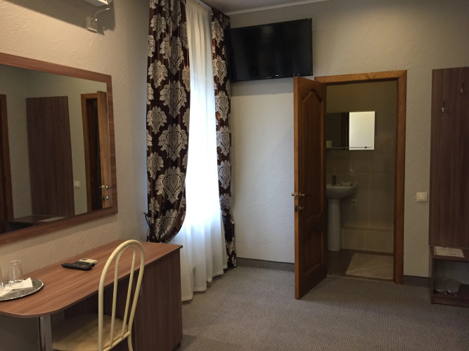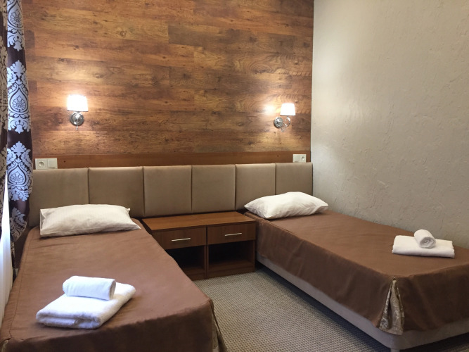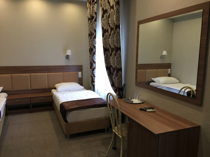 Площадь стандартного номера — 23.0 кв.м. В номере вас будут ждать душ, телевизор, халат и тапочки. Оснащение зависит от выбранной категории номера.