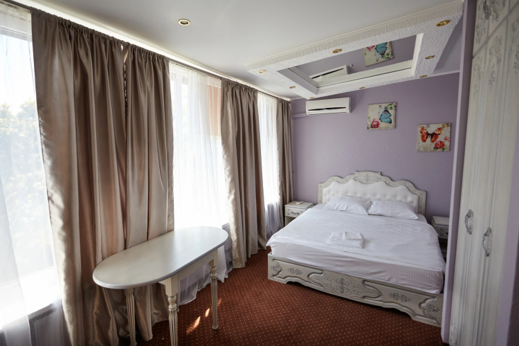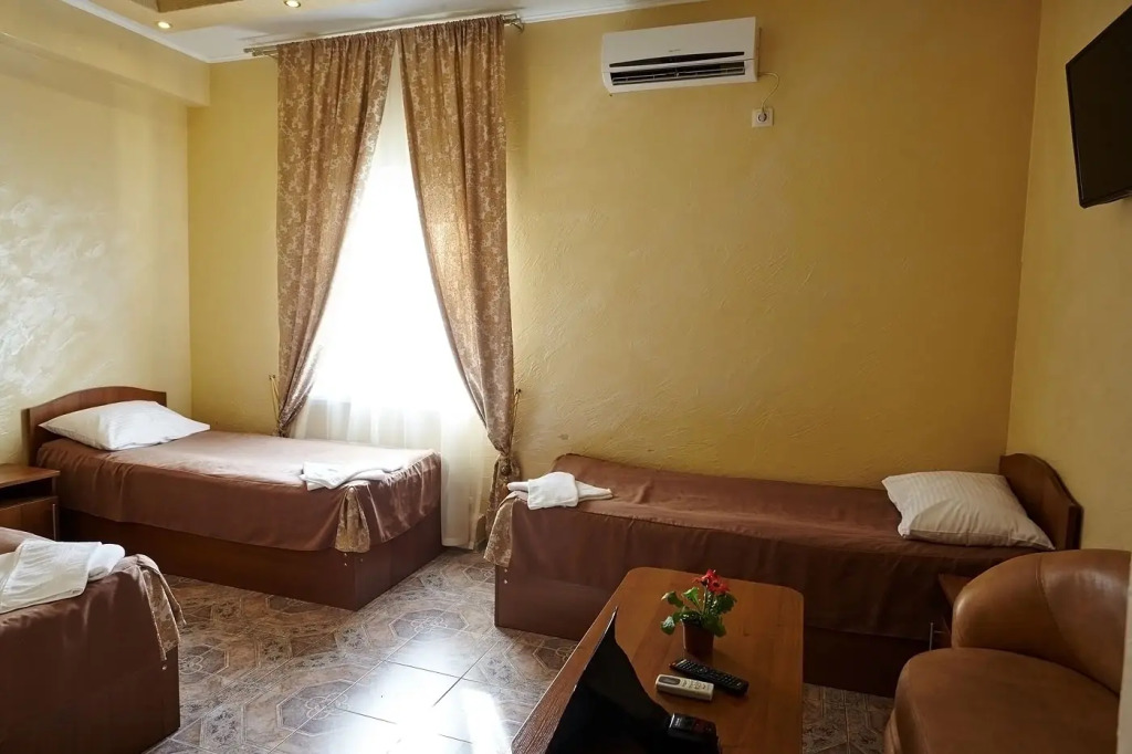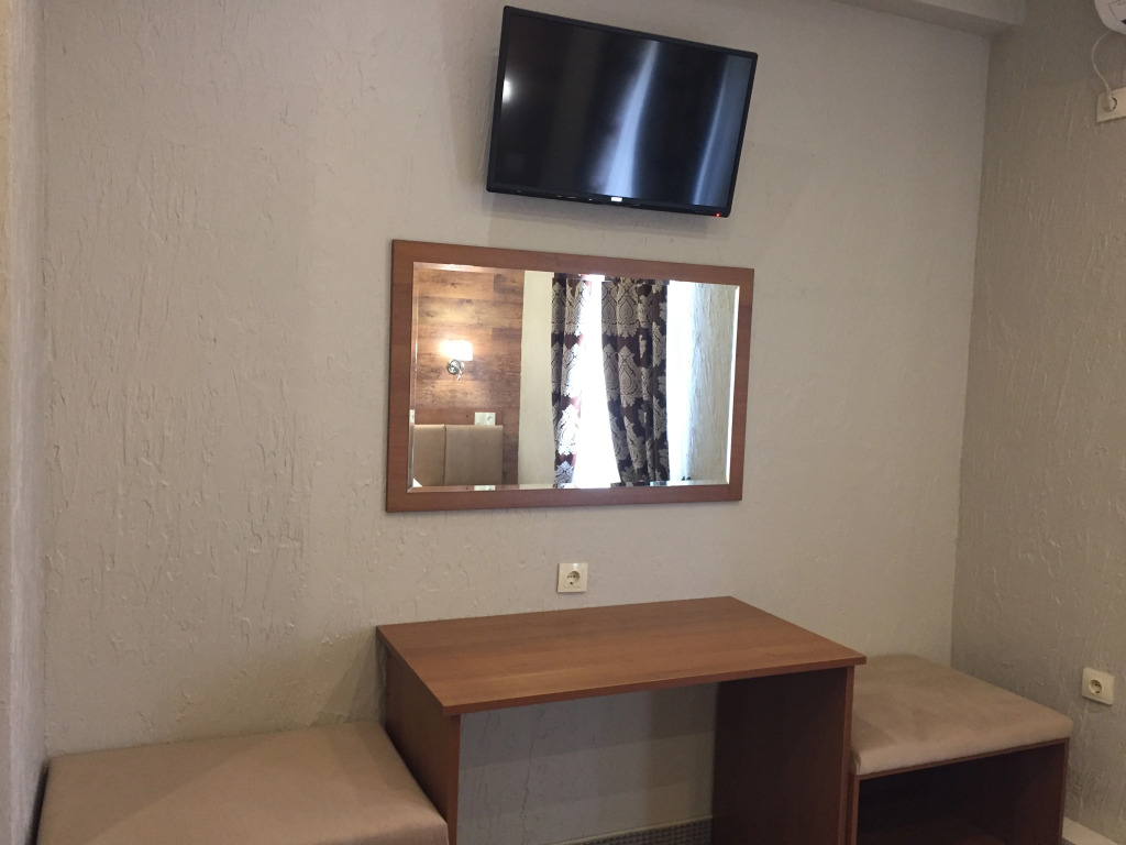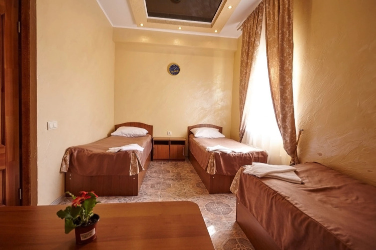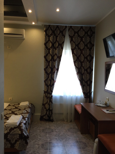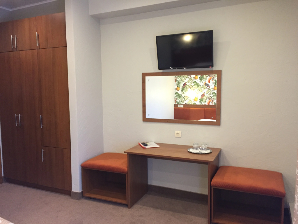Площадь стандартного номера — 23.0 кв.м. В номере вас будут ждать душ, телевизор, халат и тапочки. Оснащение зависит от выбранной категории номера.