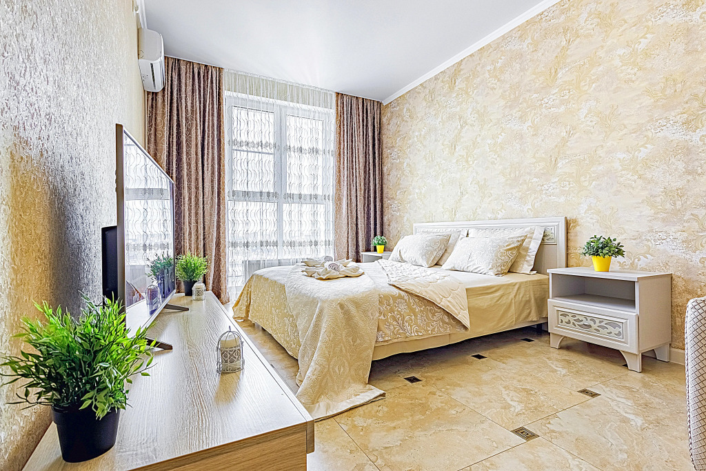 В номере вы найдёте телевизор. Оснащение зависит от выбранной категории номера.