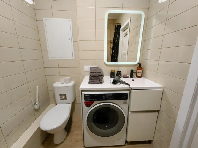 Удобно для гостей с ограниченными возможностями: на верхние этажи гостей поднимает лифт. Сотрудники апартаментов поддержат беседу на русском.