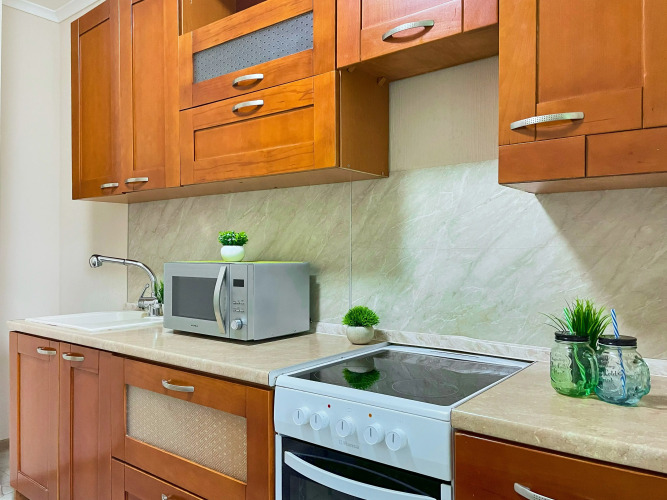 Квартира подходит для работы и отдыха. В распоряжении гостей: двуспальная кровать с ортопедическим матрасом и диван-кровать, постельное бельё и комплекты полотенец, посуда для приготовления пищи, микроволновая печь, индукционная электроплита с духовым шкафом, электрочайник, холодильник, утюг, гладильная доска, фен, стиральная машина, ванна.