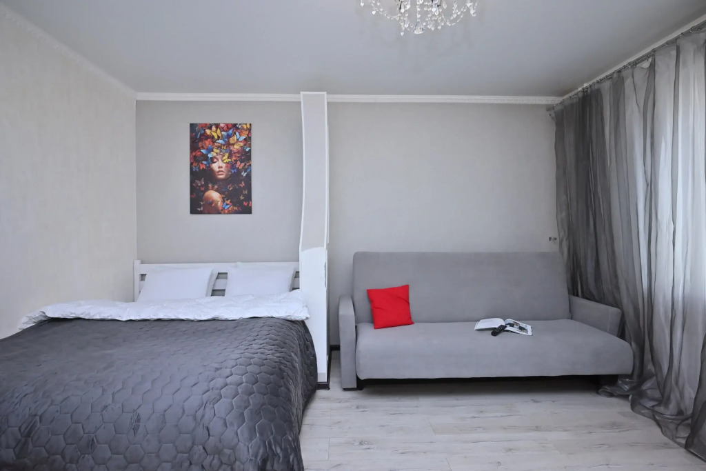 Квартира для комфортного проживания до 6 человек. В квартире есть необходимое: Wi-Fi, Smart TV, шампунь, мыло, гель для душа, одноразовые зубные щётки, стиральный порошок, полотенце и постельное бельё, электрический чайник, холодильник, плита, микроволновая печь, прочая кухонная утварь. Также чай, соль и сахар.