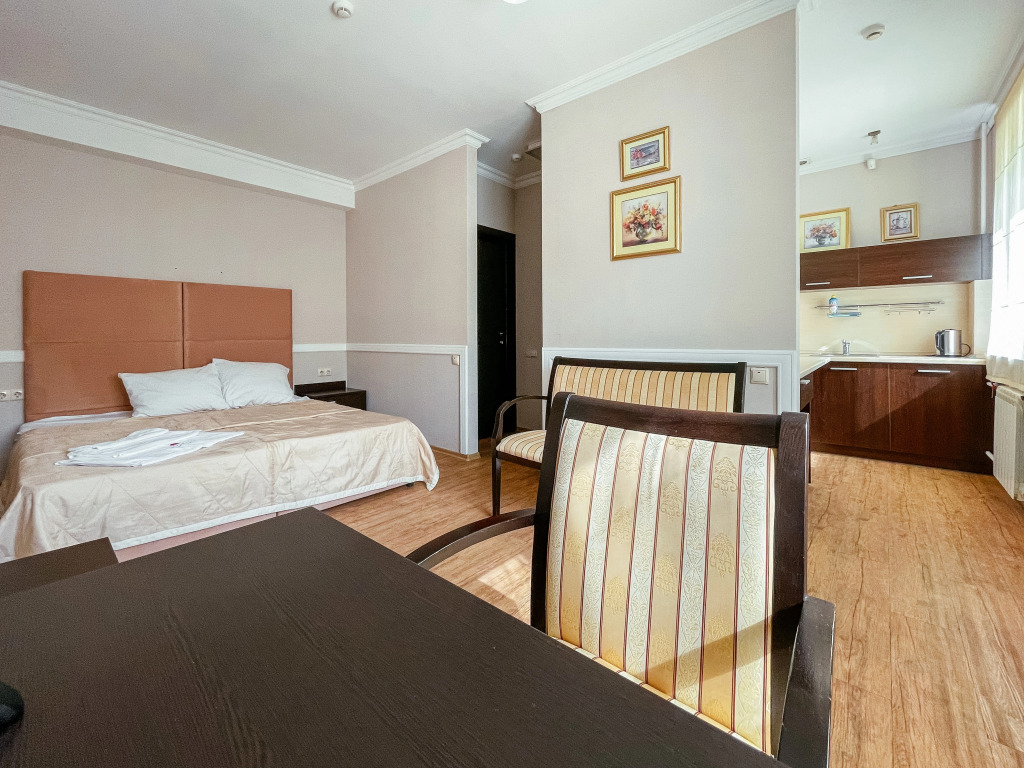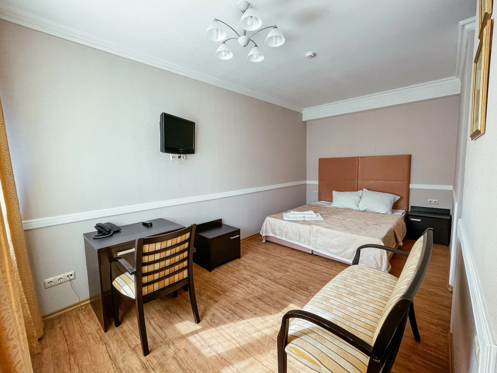 В номере гостей ждут телевизор и халат. Перечисленные услуги есть не во всех номерах.