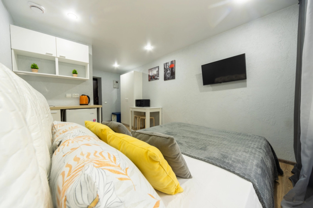 В номере вас будут ждать телевизор. Оснащение зависит от выбранной категории номера.