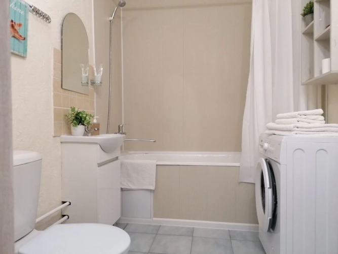 В квартире имеется шкаф для хранения вещей и необходимая бытовая техника: телевизор, интернет, Wi-Fi, стиральная машина, фен, утюг, гладильная доска.