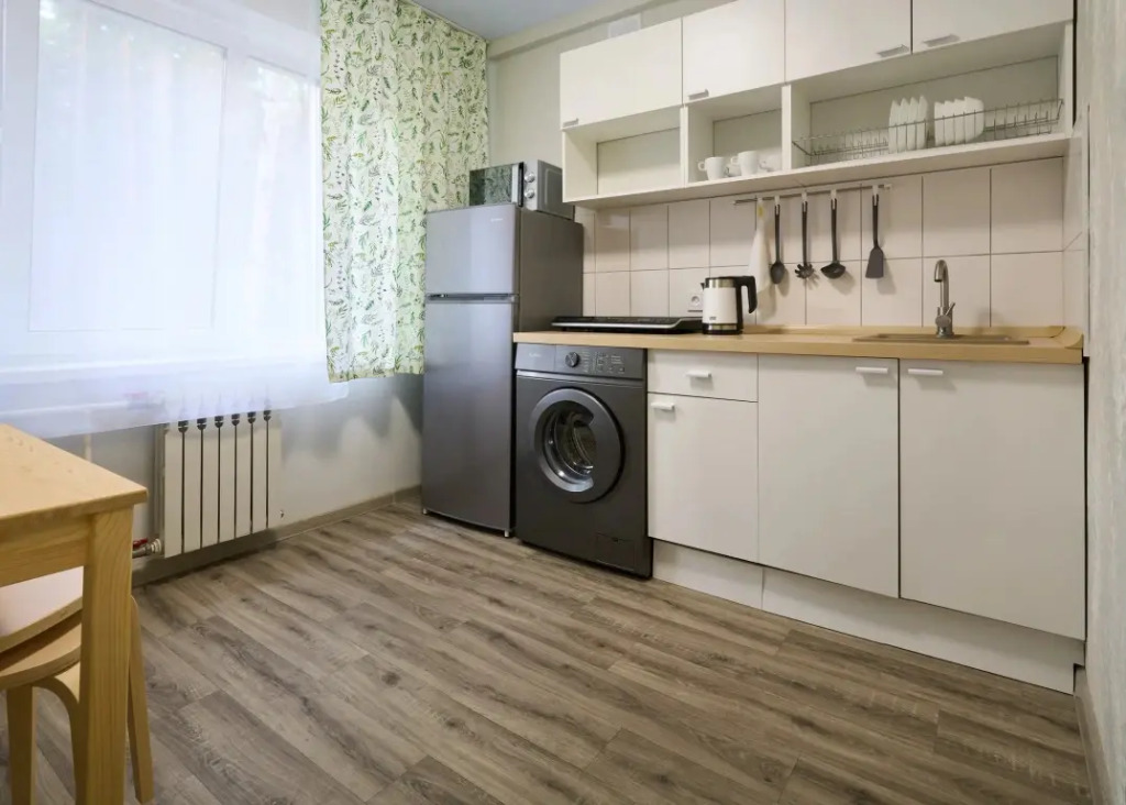 Апартаменты полностью оборудованы. На кухне есть вся необходимая посуда и техника для приготовления пищи, в том числе: чайник, плита, микроволновая печь, холодильник. В квартире есть стиральная машина, фен. Имеется цифровое ТВ и Wi-Fi.