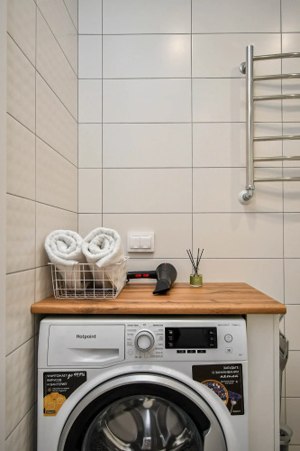 В квартире может разместиться 1 гость. В квартире: Wi-Fi, Smаrt ТV, шампунь, мыло, гель для душа, одноразовые зубные щётки, стиральный порошок, полотенца и постельное бельё, телевизор, электрочайник, холодильник, плита, микроволновая печь, прочая кухонная утварь, чай, соль и сахар, стиральная машина, фен, утюг, очки виртуальной реальности.