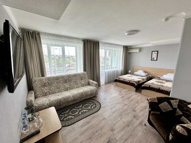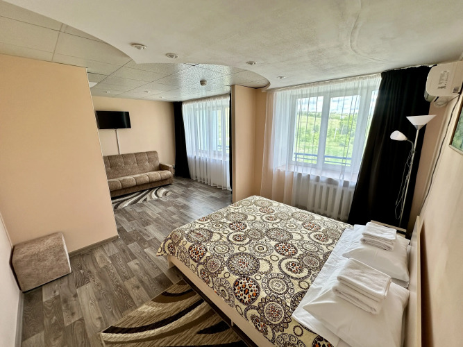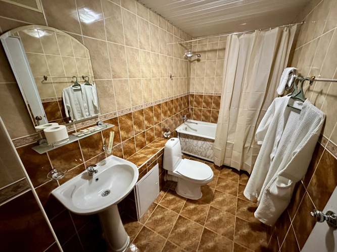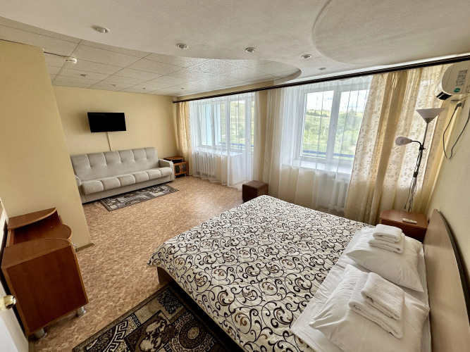 В номере вас будут ждать телевизор. Оснащение зависит от выбранной категории номера.