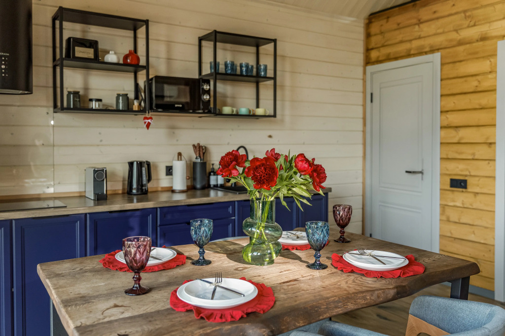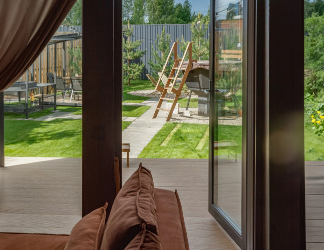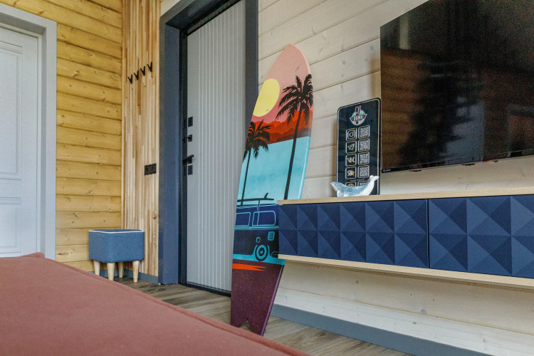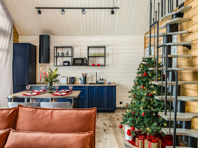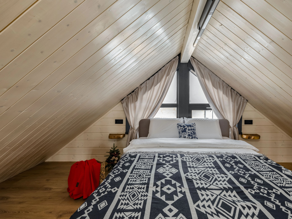 Гостям предлагается дом, который оснащён необходимым для проживания. В доме имеются две спальни и гостиная с раскладным двуспальным диваном, бесплатный Wi-Fi, телевизор. Оборудованная кухня: посудомоечная машина, холодильник, микроволновая печь, капсульная кофемашина, тостер, плита, чайник и необходимая посуда. Уличная беседка с мангальной зоной, шампурами для приготовления блюд на свежем воздухе. Санузел с душевой кабиной, тёплым полом и средствами личной гигиены. Панорамные окна с видом на горнолыжный курорт. Также к услугам гостей предлагается горячий банный чан на дровах под открытым небом, услуга оплачивается дополнительно. Максимальное количество гостей для комфортного размещения — 6 человек.