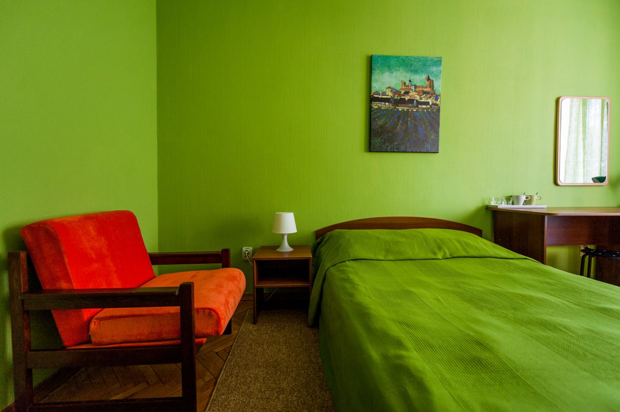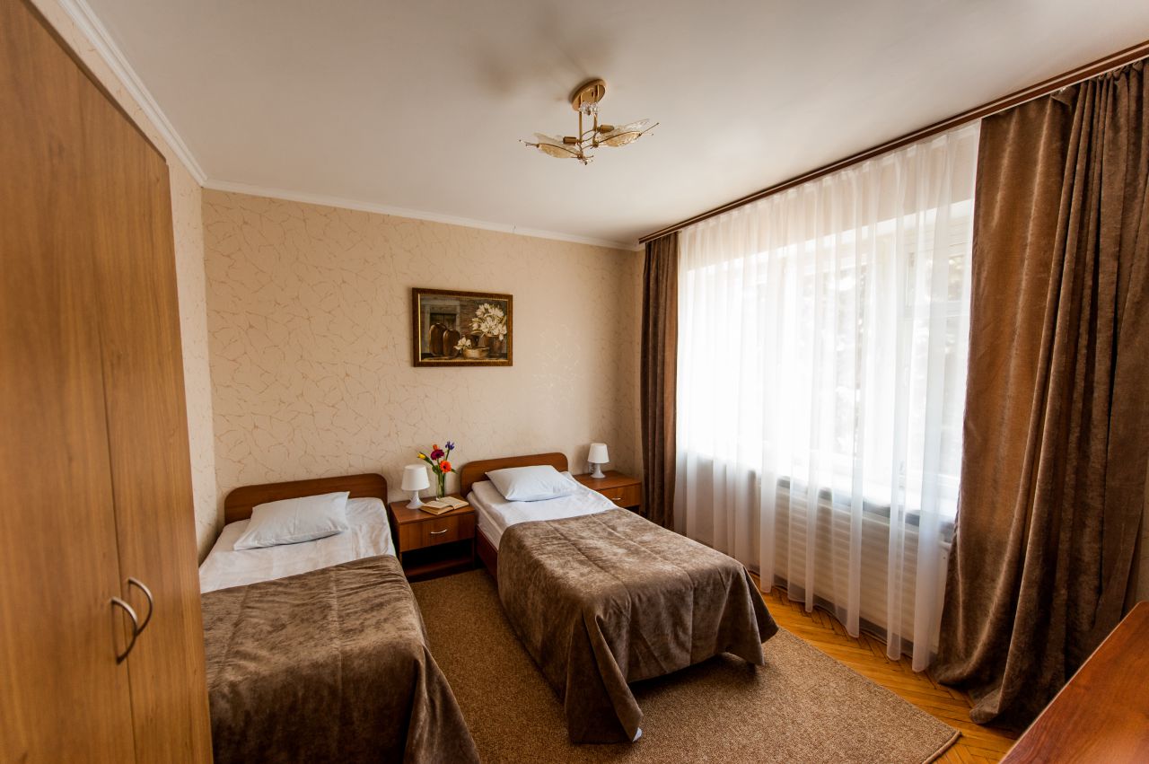 Наших гостей ожидают по-домашнему уютные 34 двухместных номера, 3 семейных двухкомнатных номера, 5 номеров категории «студия» и 1 номер категории «делюкс». Одновременно гостиница может принять более 100 человек.