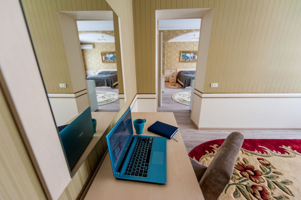 Во всех номерах есть все необходимое для успешного бизнеса и приятного отдыха:беспроводной Интернет Wi-Fi,ТВ, фен, холодильник, бесперебойное круглосуточное водоснабжение. В стоимость номеров включен завтрак.