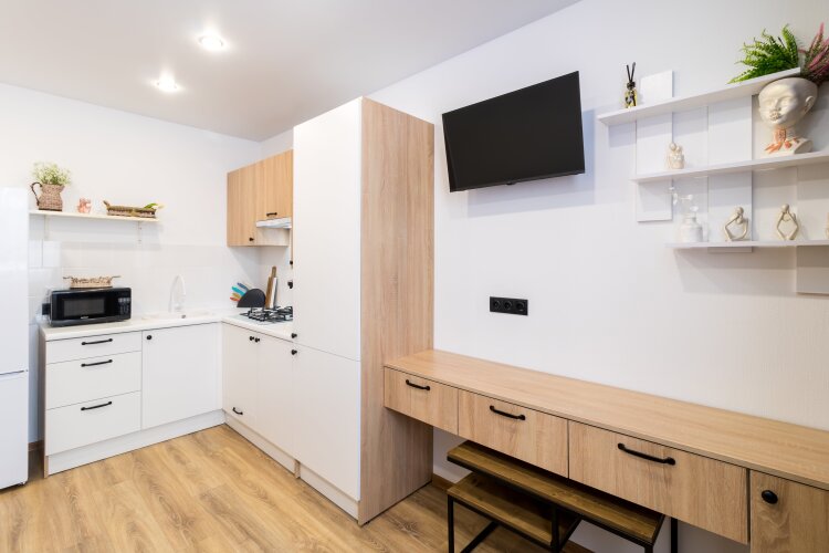 Номер уютно обставлен и оснащён необходимым, чтобы отдохнуть после долгого и насыщенного дня. Имеются телевизор. Перечисленные услуги есть не во всех номерах.