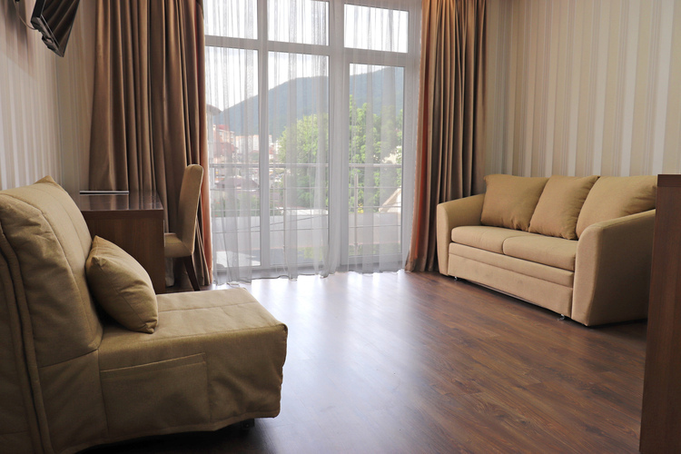 сплит-системой, сейфом, феном, индивидуальной ванной и санузлом с туалетными принадлежностями. Интерьер комнат продуман до мелочей.