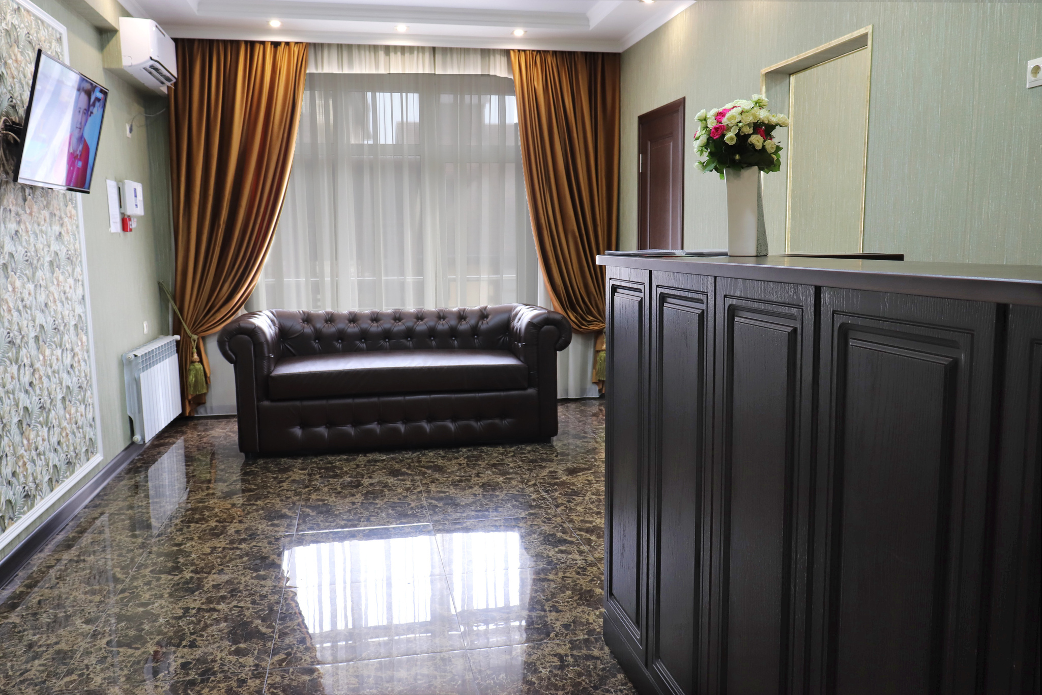 Работает круглосуточная стойка регистрации, где вежливый персонал