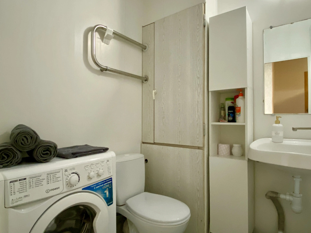 Однокомнатная квартира с тремя спальными местами рассчитана на размещение до 4 человек. В распоряжении гостей: диван шириной 130 см, раскладной диван размером 140х240 см и диван 90х180 см.