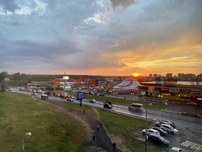 С другой стороны дома расположен торгово-развлекательный центр с фудкортом и кинотеатром.