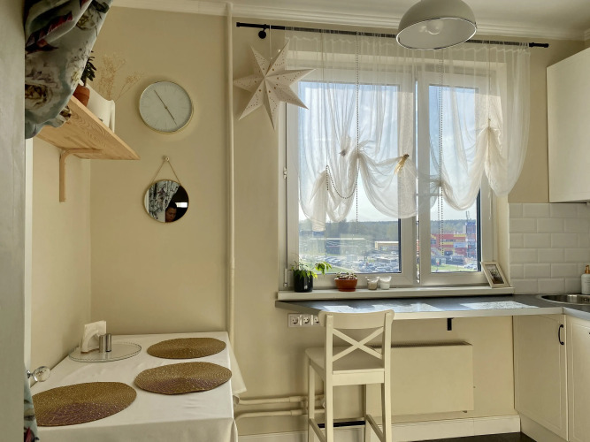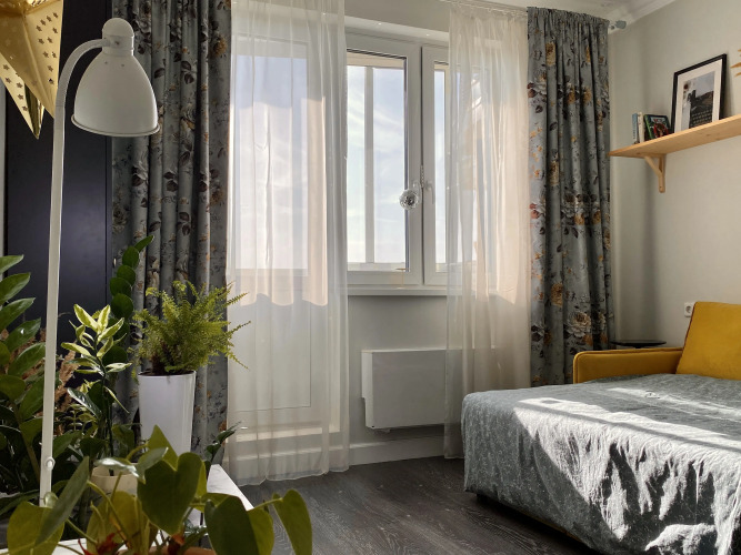 В распоряжении гостей кровать шириной 1,2 м и раскладной диван 1,4 м х 2 м, кухня с техникой и посудой, где есть чай, кофе, сахар, соль, перец, подсолнечное масло. Также гостям доступны: Wi-Fi, фен, утюг, гладильная доска, сушилка, постельное бельё, полотенца, одноразовые тапочки.
