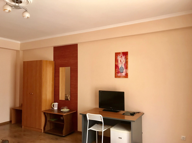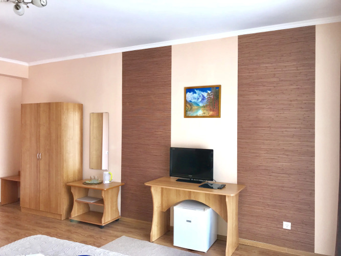 В номере вы найдёте телевизор. Оснащение зависит от выбранной категории номера.