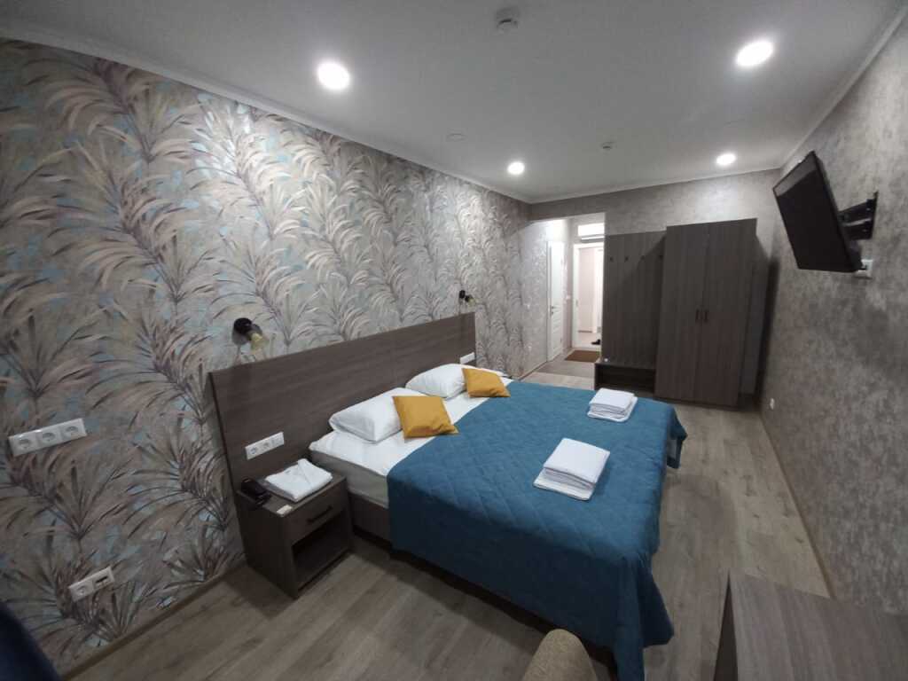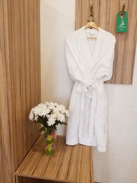 Номер уютно обставлен и оснащён необходимым, чтобы отдохнуть после долгого и насыщенного дня. Имеются телевизор и халат. Оснащение зависит от выбранной категории номера.