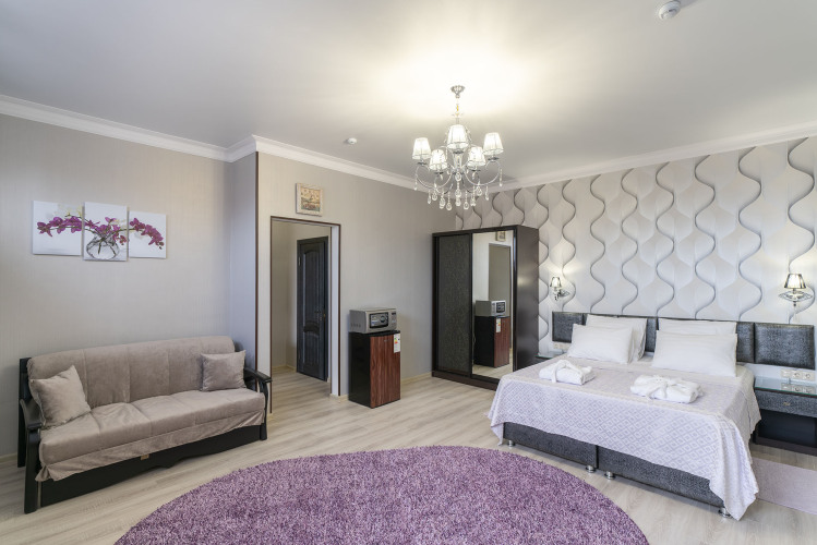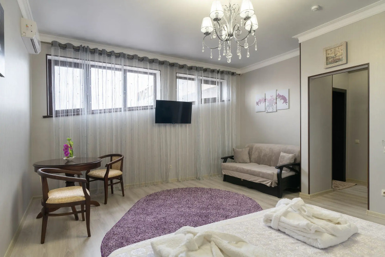 В номере гостей ждут телевизор и халат. Оснащение зависит от выбранной категории номера.