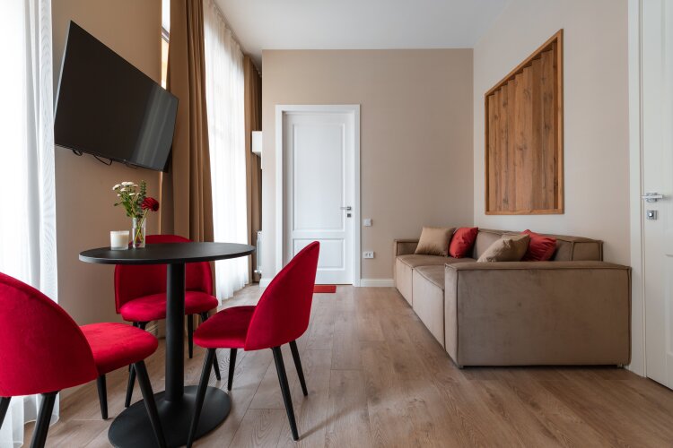 Апартаменты Emre, адрес на карте Махачкала, улица Салаватова, д. 13а, с описанием номеров и доступностью онлайн бронирования на ресурсе vashotel.ru , стоимость проживания и удобства.