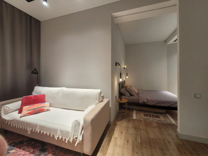 Гостиница Квартира Стильная недалеко от Пляжа, адрес на карте Махачкала, улица Мирзабекова, д.152, с описанием номеров и возможностью онлайн бронирования на площадке ВашОтель.RU , стоимость проживания и удобства.