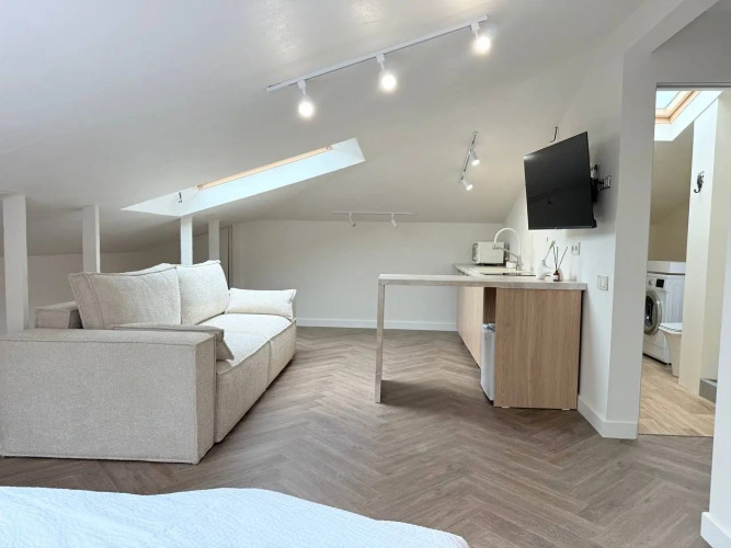 Гостиница Квартира Sky13 — уютная студия с дизайнерским интерьером и мансардными окнами на 13 этаже,