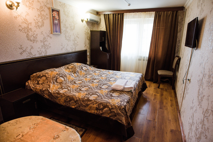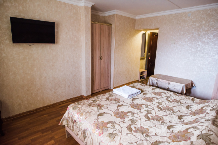 Номер уютно обставлен и оснащён необходимым, чтобы отдохнуть после долгого и насыщенного дня. Имеются телевизор и халат. Оснащение зависит от выбранной категории номера.
