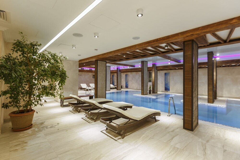 Гостям также доступны следующие услуги: сауна, паровая баня, спа-центр и хамам. Любителям спорта подготовили фитнес-центр. Среди развлечений на территории — площадка для пикника. Здесь будем баловать себя водными процедурами: есть бассейн и крытый бассейн.