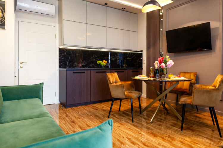 Апартаменты Royal Deluxe в ЖК Лайнер, адрес на карте Москва, бульвар Ходынский, д. 2, с характеристиками номеров и возможностью онлайн бронирования на ресурсе vashotel.ru , цены проживания и удобства.