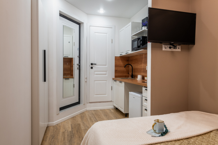 Номер уютно обставлен и оснащён необходимым, чтобы отдохнуть после долгого и насыщенного дня. Имеются телевизор. Перечисленные услуги есть не во всех номерах.