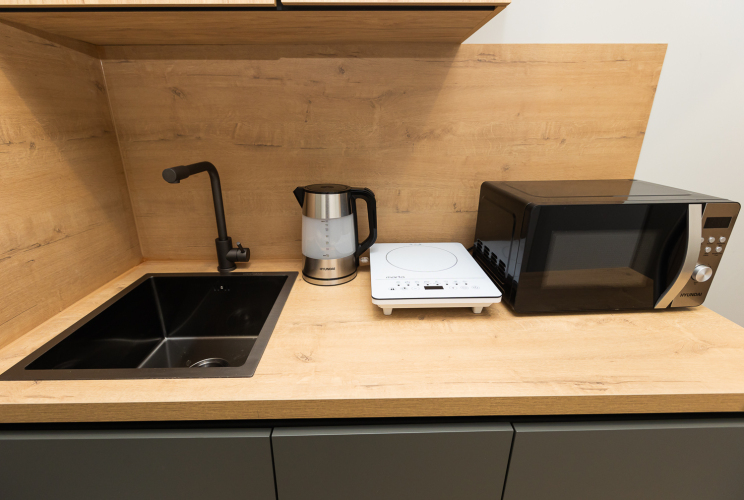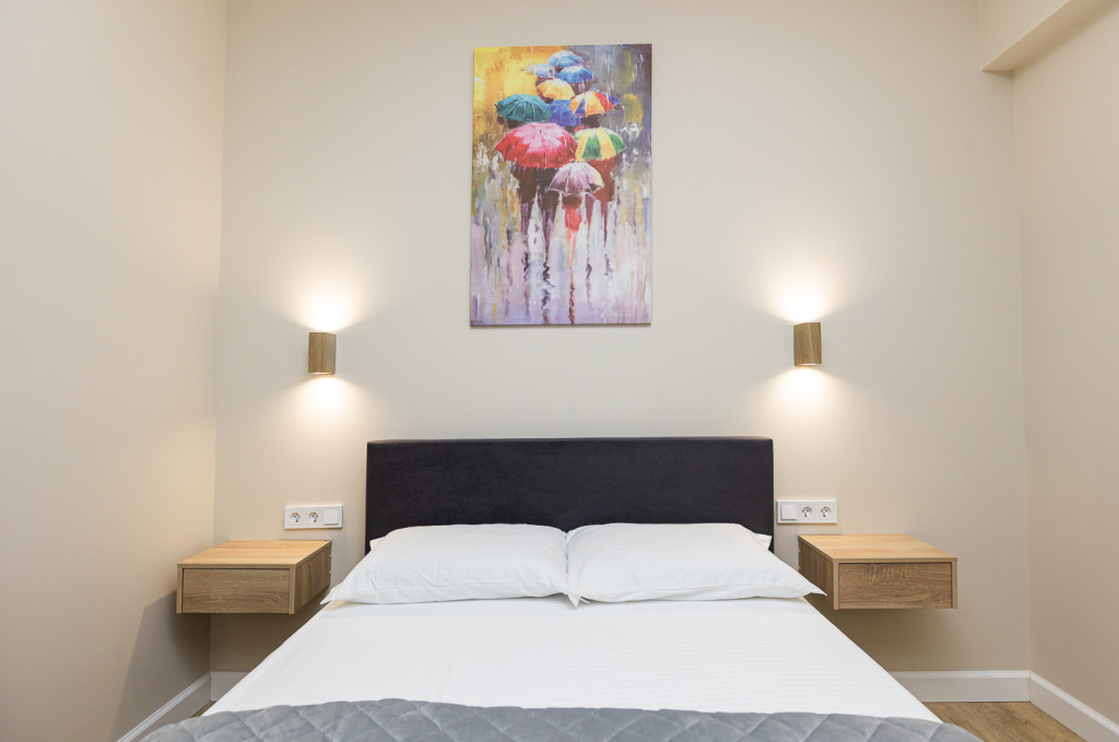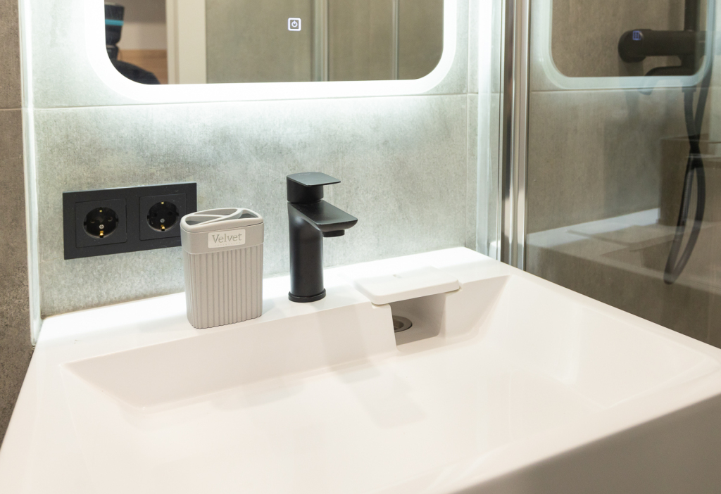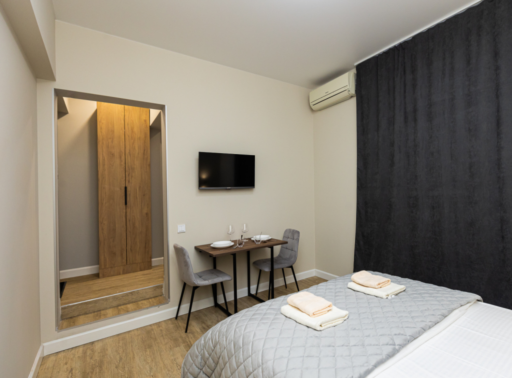 В номере вы найдёте телевизор. Оснащение зависит от выбранной категории номера.