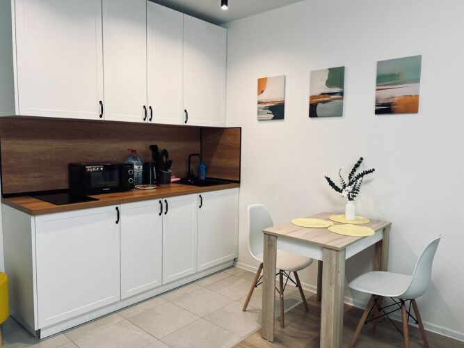 Сотрудники апартаментов поддержат беседу на английском и русском.